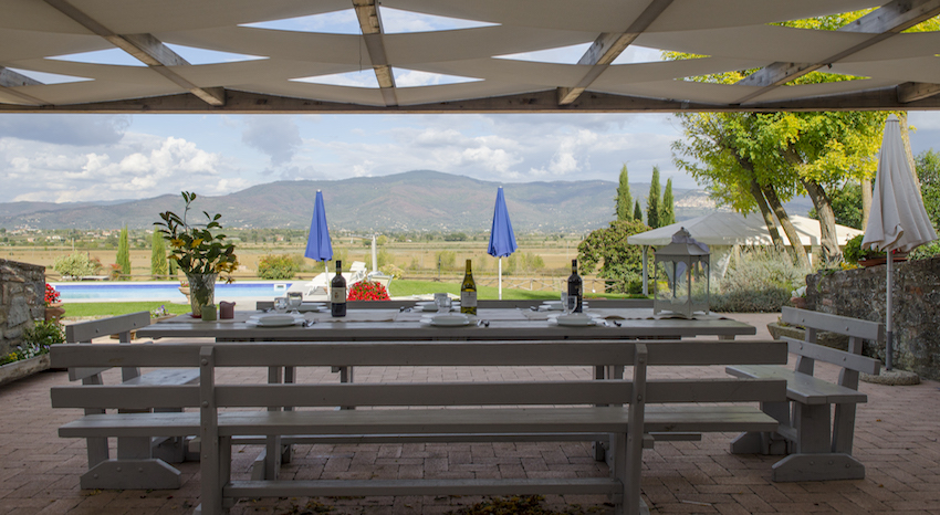 Tuscan stone villa with room for 24/25 people, close to the beautiful town of Cortona in the province of Arezzo. Villa Cortona consists of two buildings with a total of 8 apartments. The property is rented exclusively for groups from 20 to 25 people. Some extra beds can be added. Here, groups of friends can holiday together, and still be able to be a little to themselves in their own apartment with their own small kitchen. Beautiful common outdoor areas with large terrace and pool. The villa is air conditioned. The property is located in the valley “Val di Chiana”, which is known for beautiful and lush landscapes with rolling hills. Cortona is a famous art city in Tuscany. Famous films such as “La Vita È Bella” and “Under the Tuscan Sun” have been filmed in Arezzo and Cortona.