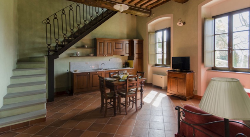The apartments are newly renovated and spacious, and decorated in Tuscan style with terracotta tiles on the floors and exposed beams on the ceiling. The apartments have a well-equipped kitchen including dishwasher, and nice tiled bathrooms. Wifi and TV in all apartments.