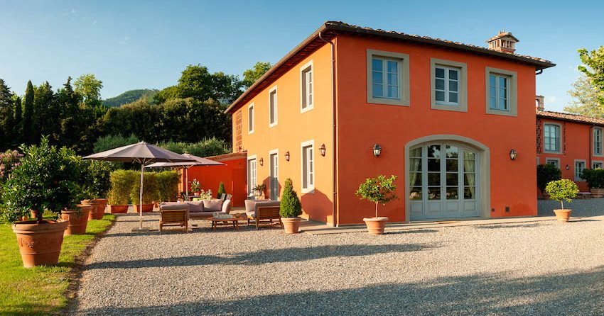 Spesielt nydelig villa sentralt i Lucca inndelt i 5 høystandard leiligheter. Tre leiligheter med to soverom, og to leiligheter med tre soverom. Totalt kan stedet innlosjere 24+8 personer. Leilighetene kan leies enkeltvis, men ved forespørsel om høysesong gis proiritet til grupper som ønskes å leie stedet eksklusivt. Alle leilighetene har private uteplasser med bord og stoler, og deler stort basseng (8 x 17 m) med boblebad. Bassenget har saltvann, og er normalt åpent fra mai og til midten av oktober. Det er 600 meter til nærmeste koselige trattoria, og 1,5 km til nærmeste landsby. Leilighetene er delikate og moderne innredet i lyse farger, og holder høy standard. Stedet stod nytt sommeren 2018. Eiendommen er inngjerdet, har store plener og er i tillegg vakkert beplantet med blomster og busker.
