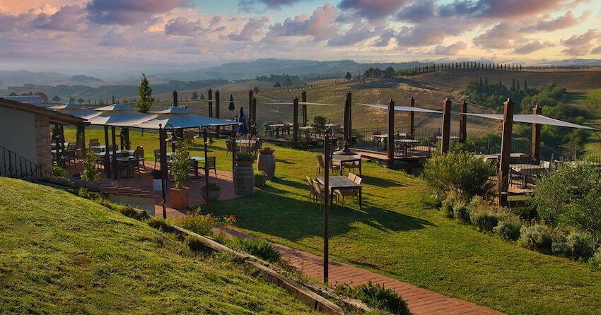 Gjester ved Villa Pelagaccio har mulighet til å benytte seg av alle de ulike aktivietene som tilbys ved Agriturisimo Diacceroni (18 minutter med bil unna). Agriturismoen har en restaurant som byr på ekte toskanske smaker, og fantastisk utsikt over det bølgende landskapet. Her serveres smakfulle måltider laget med kortreiste råvarer – olivenoljen er produsert på egen gård, og grønnsakene dyrkes på eiendommen eller hos naboen. Restauranten er åpen for frokost, lunsj og middag.